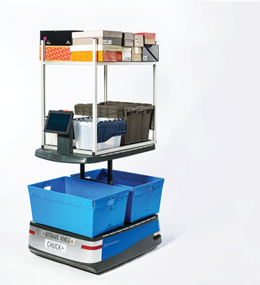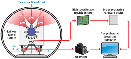 Figure 1: 6 River Systems’ collaborative automation warehouse robot, known as Chuck, uses TiM LiDAR sensors from SICK to build a map of the environment and lead warehouse associates to the correct location to pick products. SCENES AND OBJECTSDepending on the application, the vision system may be either scene-related or object related. In scene-related applications, the camera is generally mounted on a mobile robot and algorithms such as simultaneous localization and mapping (SLAM) are used to construct or update a map of the surrounding environment. In object-related tasks, a camera, cameras, laser or TOF system is attached to the end-effector of an industrial robot allowing new images to be captured as the end-effector is moved. Of course, with different tasks, different kinds of 3D imaging systems may be required. In scene-related applications, the robot needs to be aware of the surroundings and whether any objects or people are present to hinder its path. In applications such as these, it may also be necessary to add a capacity to pick and place objects. Examples of such applications include self-driving cars, warehouse pick-and-fetch robots and military-based robotic systems designed to identify, for example, suspicious objects. Unlike object-related tasks that are designed to perform specific pick-and-place functions, these systems must also incorporate methods to localize and map their local space and, once located, must perform a specific function such as fruit picking. In one sense, these systems add an extra sophistication to robotics systems and to do so, a number of different hardware and software options can be used. Figure 2: At the Southwest Jiaotong University, Dong Zhan and his colleagues have designed and built a dynamic railway tunnel 3D clearance inspection based on a multi-camera and structured-light vision system. MAPPING THE ENVIRONMENTTo build a map of the surrounding environment, the problem of scene mapping is solved by incorporating LiDAR scanning range finders from companies such as SICK (Minneapolis, MN, USA; www.sick.com) and Velodyne (San Jose, CA, USA; https://velodynelidar.com), onto robots or autonomous vehicles. At 6 River Systems (Waltham, MA, USA; https://6river.com), for example, the company’s collaborative automation warehouse robot known as Chuck uses TiM LiDAR sensors from SICK to build a map of the environment and lead warehouse associates to the correct location to pick products (Figure 1). In a similar application, RK Logistics Group (Fremont, CA, USA; www.rklogisticsgroup.com), partnered with Fetch Robotics (San Jose, CA, USA; www.fetchrobotics.com) to increase employee productivity by automating the task of transporting products from one part of the RK Logistics’ warehouse to another (see “Autonomous mobile robots target logistics applications,” Vision Systems Design, May 2018; http://bit.ly/VSD-AMR). Fetch Robotics’ Freight autonomous mobile robot employs a SICK TIM571 LiDAR scanning range finder interfaced to its on-board computer over an Ethernet switch. Using TOF measurement, the TIM571 emits an 850nm laser pulse which is scanned over a 220° field of view (FOV) using a moving mirror. To evaluate the most optimal system for autonomous vehicles, Simona Nobili and her colleagues at the Ecole Centrale Nantes (Nantes, France; www.ec-nantes.fr) have analyzed two common LiDAR configurations: the first based on three planar SICK LMS151 LiDAR sensors and the other on a Velodyne 3D LiDAR VLP-16 sensor. Implementing a SLAM algorithm, the systems they developed used three SICK LMS151 sensors placed at 50 cm from the ground level on a Renault Zoe ZE electric car and a Renault Fluence equipped with a 16-channel Velodyne LiDAR PUCK (VLP-16) placed above the roof. In their research, the researchers found that maps built with VLP-16 data were more robust against common medium-term environment changes such as cars parked on the roadside and that single sensor implementations such as these were easier to install and calibrate (see “16 channels Velodyne versus planar LiDARs based perception system for Large Scale 2D-SLAM,” http://bit.ly/VSD-VEL). 3D MEASUREMENTSOf course, many machine vision applications only require object-related tasks such as 3D measurements to be performed. Here, depending on the nature of the product to be inspected, several different methods exist, one of the most commonly used being structured laser light analysis or laser line profiling. In this method, a structured laser light is either moved across an object or allowed to impinge on the object as it moves along conveyor. Single lines of the reflected laser light are then digitized by an industrial camera and the distance of each surface point is computed to obtain a 3D profile of the object. In order to build a system like this, developers have the option of using single laser line sources from companies such as Coherent (Santa Clara, CA, USA; www.coherent.com) and Z-Laser (Freiburg, Germany; www.z-laser.com) and separate cameras with which to digitize the reflected light. Such systems are used in numerous machine vision applications including electronics inspection, dimensional parts analysis and automotive tire tread inspection. One of the more novel applications of this technology has been to accurately produce 3D measurements of railway tunnels. In a system developed at the Southwest Jiaotong University (Chengdu, China; https://english.swjtu.edu.cn/), Dong Zhan and his colleagues built a dynamic railway tunnel 3D clearance inspection based on a multi-camera and structured-light vision system (Figure 2). To capture 3D images of the tunnel, seven MVC1000SAM GE60 1280 × 1024 industrial cameras from Microview (Beijing, China; http://www.microview.com.cn) with 5-mm focal length lenses from Kowa (Aichi, Japan; www.kowa.co.jp) are used to capture seven reflected laser lines from Z-Laser Model ZM18 structured lasers, while another two cameras and lasers are used to mon