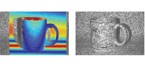 Just as active laser and camera systems need to be accurately calibrated, so too do dual-camera configurations. Like active/laser camera systems that are offered as products that embed both cameras and lasers and are supplied pre-calibrated, so too are passive stereo systems. These often employ two (or more) stereo vision cameras and are pre-calibrated, saving systems developers the task. The most well-known of these 3D stereo camera systems are the Bumblebee series from FLIR Integrated Imaging Solutions (Richmond, BC, Canada; www.flir.com/mv), the SV-M-S1 from Ricoh (Tokyo, Japan; https://industry.ricoh.com) and the ZED from Stereolabs (San Francisco, CA, USA; www.stereolabs.com). While the SV-M-S1 and ZED use a fixed two-camera implementation, the XB3 Bumblebee series from FLIR Integrated Imaging Solutions is a three-sensor multi-baseline stereo camera design that features 1.3 MPixel CCD image sensors. Because three sensors are used, the unit can operate with an extended baseline that provides greater precision at longer ranges and a narrow baseline that improves close range matching. While widely used in 3D imaging and robotics applications, such systems are not effective when the object being imaged has low texture or is without texture. In cases such as these, it becomes necessary to project a light onto the object to highlight these structures. Projected texture stereo vision cameras such as the Ensenso 3D camera series from IDS Imaging Development Systems (Obersulm, Germany; https://en.ids-imaging.com IDS Imaging Development Systems’ Ensenso 3D camera features two integrated CMOS sensors and a projector that casts high-contrast textures onto the object to be captured by using a pattern mask. The result is a more detailed disparity map and a more complete and homogeneous depth information of the scene: TIME OF FLIGHTOne alternative method to overcome the problems of imaging relatively texture-less objects is to use Time of Flight (TOF) sensors, which work by illuminating a scene with a modulated light source and observing the reflected light. The phase shift between the illumination and the reflection is measured and translated to distance. These are often deployed in robotic applications since they are relatively compact, lightweight and operate at high frame rates. In such TOF systems, modulated infrared light from the system is reflected from an object and captured by an image sensor. The phase difference between the emitted and received light and the amplitude values then provide distance information and a grayscale image of the scene. Several companies develop these devices, some of the most well-known being Basler (Ahrensburg, Germany; www.baslerweb.com), ifm electronic (Essen, Germany; www.ifm.com), Infineon Technologies (Neubiberg, Germany; www.infineon.com) and Odos Imaging (Edinburgh, UK; www.odos-imaging.com) – a company recently acquired by Rockwell Automation (Milwaukee, WI, USA; www.rockwellautomation.com). While active and passive systems such as structured light, TOF and stereo imaging remain the most popular means to perform 3D imaging, other methods such as shape-from-shading can also be used. By imaging a part sequentially from different angles, these images can be computed to generate the slope of the surface and its topography. This is the principle behind the Trevista system from Stemmer Imaging (Puchhein, Germany; www.stemmer-imaging.de), which has been used by Swoboda (Wiggensbach, Germany; www.swoboda.de) to inspect automotive components (see “Shape from shading images steering components,” http://bit.ly/VSD-SFS). from vision-systems.com